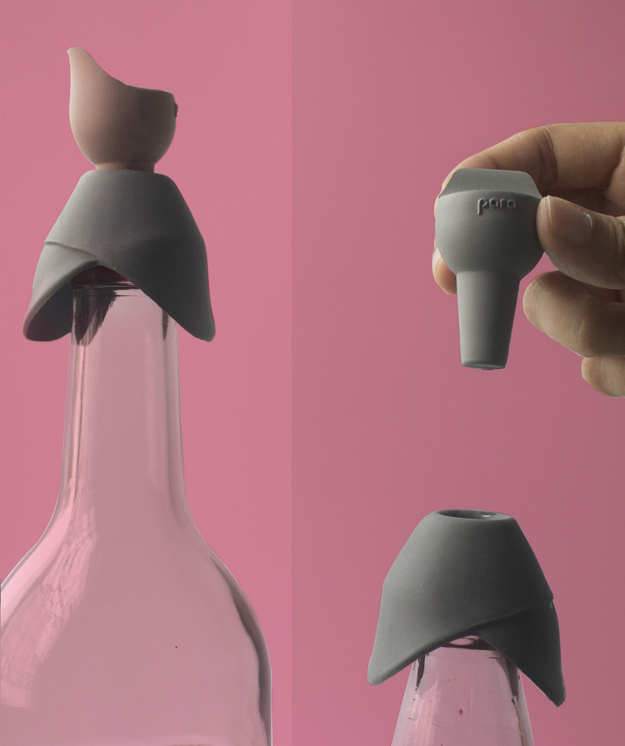Inovativní patentovaný design umožňuje využít zátku také jako nálevku pro opětovné využití skleněných lahví při přípravě a skladování nejrůznějších nápojů. Inteligentní zátka na lahev (Three-In-One) je vyrobená ze 100% přírodního, antibakteriálního a netoxického kaučuku. Univerzální velikost pro všechny standardní lahve od vína a šampaňského. Kolekce Autumn/Winter.
